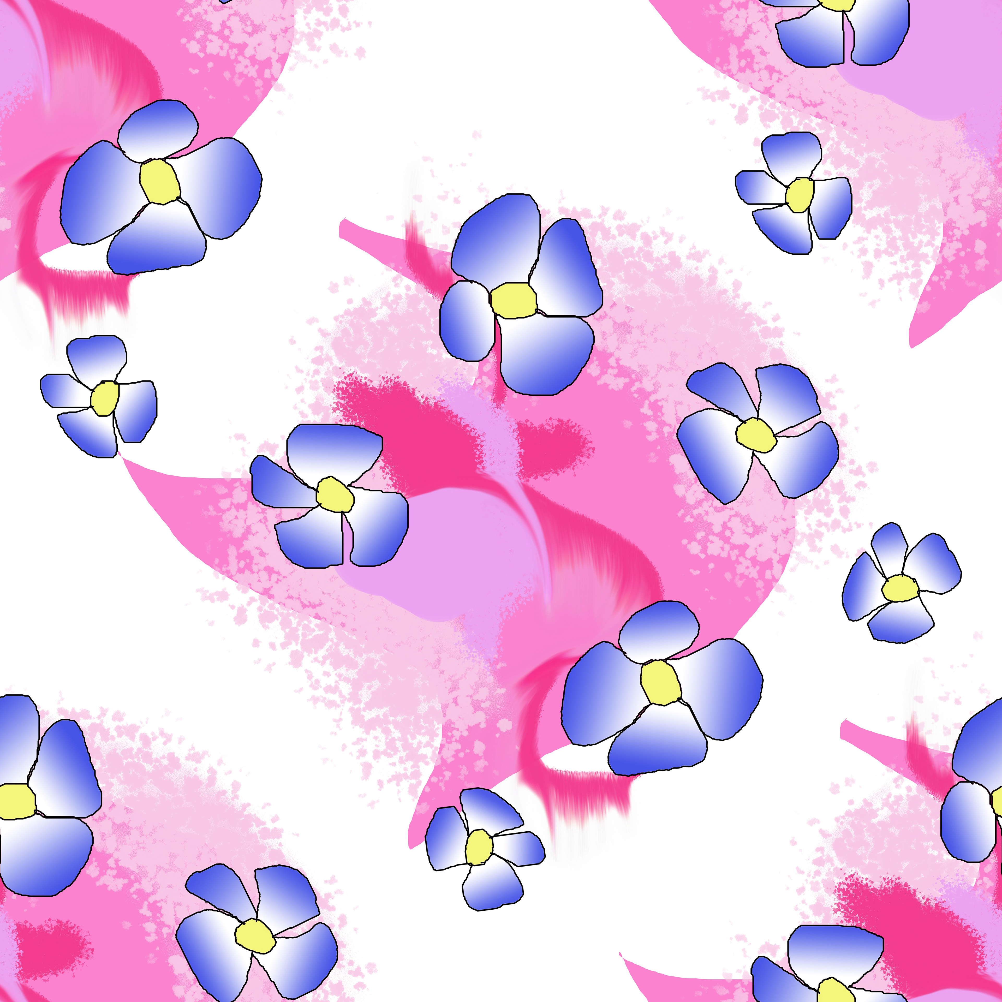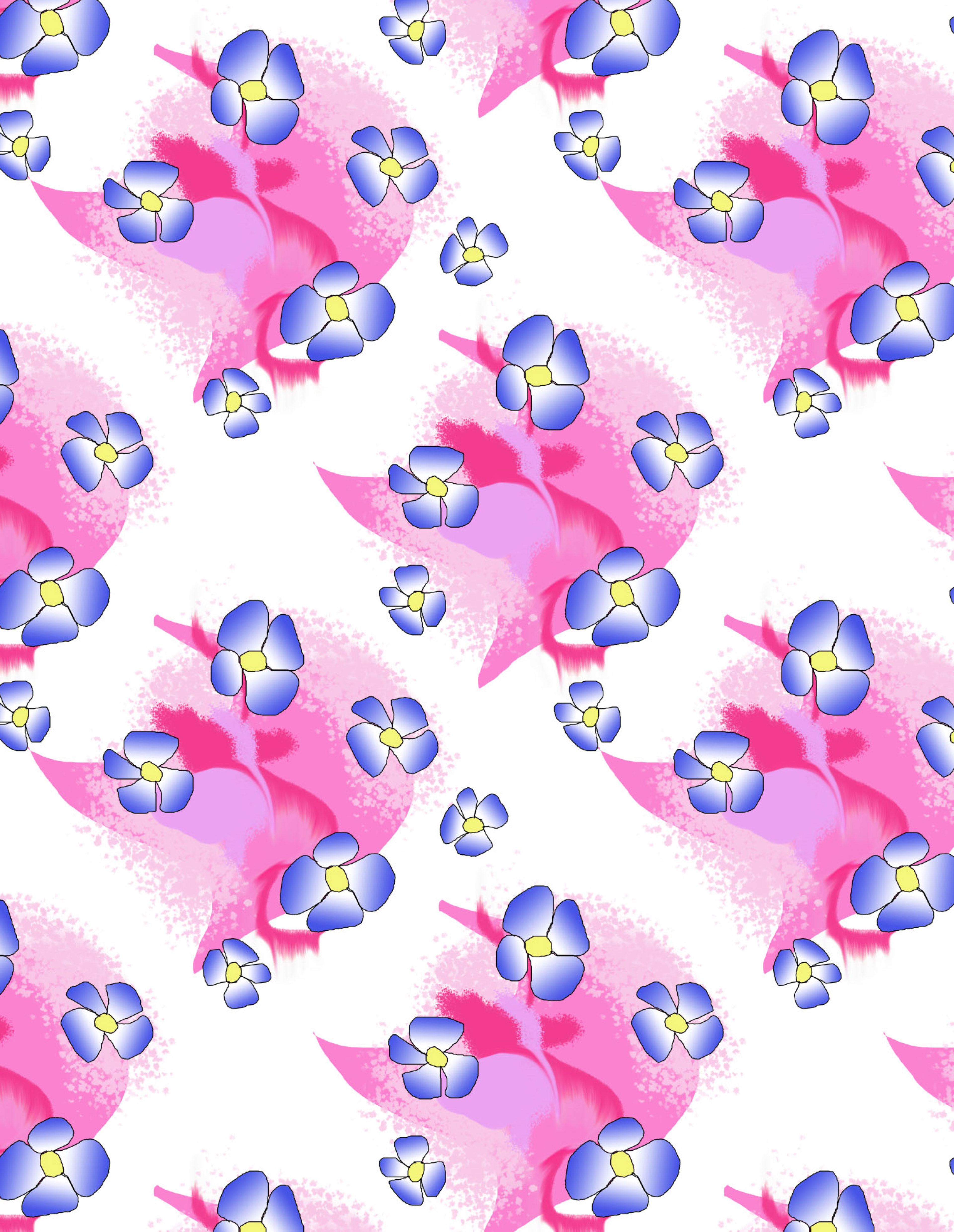 Blue Flowers On Pink pattern.
